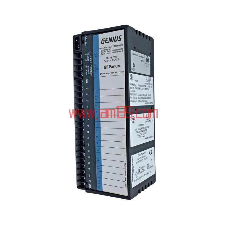 该模块采用先进的Genius通信协议,能够与GE品牌的可编程逻辑控制器(PLC)及其他工业控制设备实现无缝对接。这种设计不仅提升了系统整体的数据传输效率,更在复杂工业环境中保证了通信的稳定性。对于追求高效自动化控制的应用场景而言,IC660BBD020无疑是一个理想的选择。